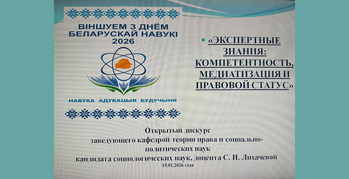 В рамках Недели белорусской науки на факультете экономики и права заведующим кафедрой теории права и социально-политических дисциплин Светланой Николаевной Лихачевой проведено научное мероприятие в форме открытого дискурса «Экспертное знание: компетентность, медиатизация, правовой статус». Преподаватели и студенты обсудили вопросы современного состояния экспертного знания, его роли в формировании общественного мнения, пути формирования экспертного сообщества, рассмотрели правовые аспекты существования современной экспертизы.