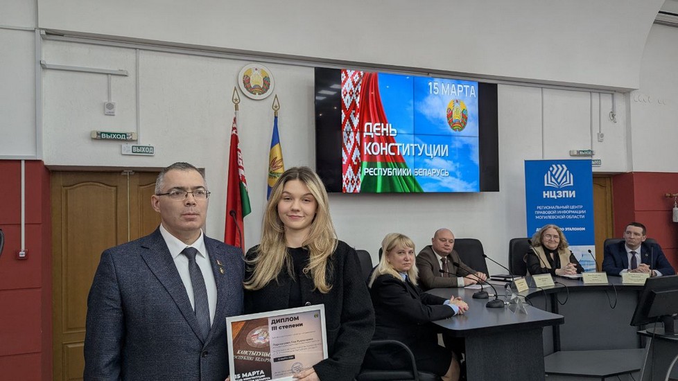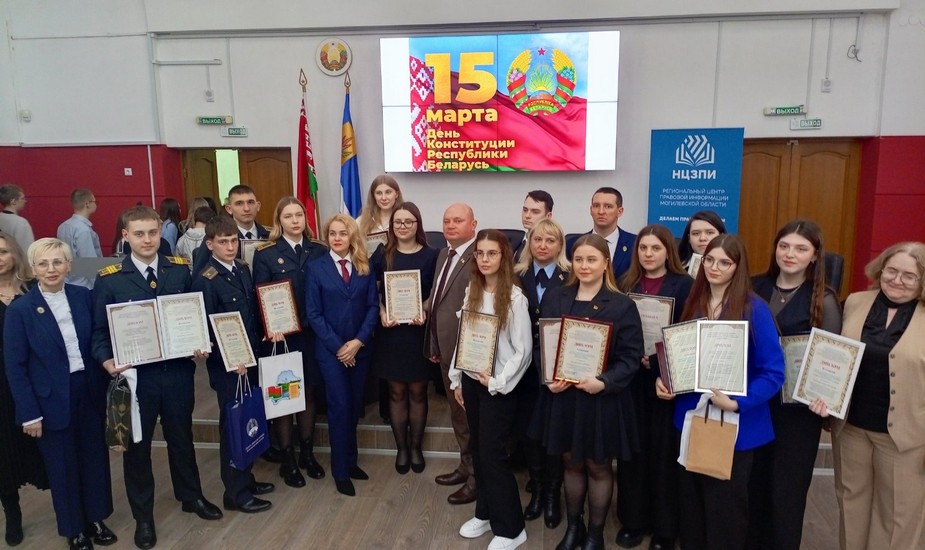 Председатель Могилевской областной нотариальной Инна Михайловна Готина вручила дипломы в номинации «Нотариат», заместитель председателя экономического суда Могилевской области Татьяна Валентиновна Гашпар — в номинации «Правосудие», заместитель начальника управления принудительного исполнения главного управления юстиции Могилевского облисполкома Елена Валерьевна Куткович — в номинации «Принудительное исполнение», председатель Могилевской областной коллегии адвокатов Денис Валерьевич Кривошеин – в номинации «Адвокатура». Директором Регионального центра правовой информации Могилевской области Натальей Владимировной Станкевич специальными призами отмечены лучшие работы во всех номинациях.